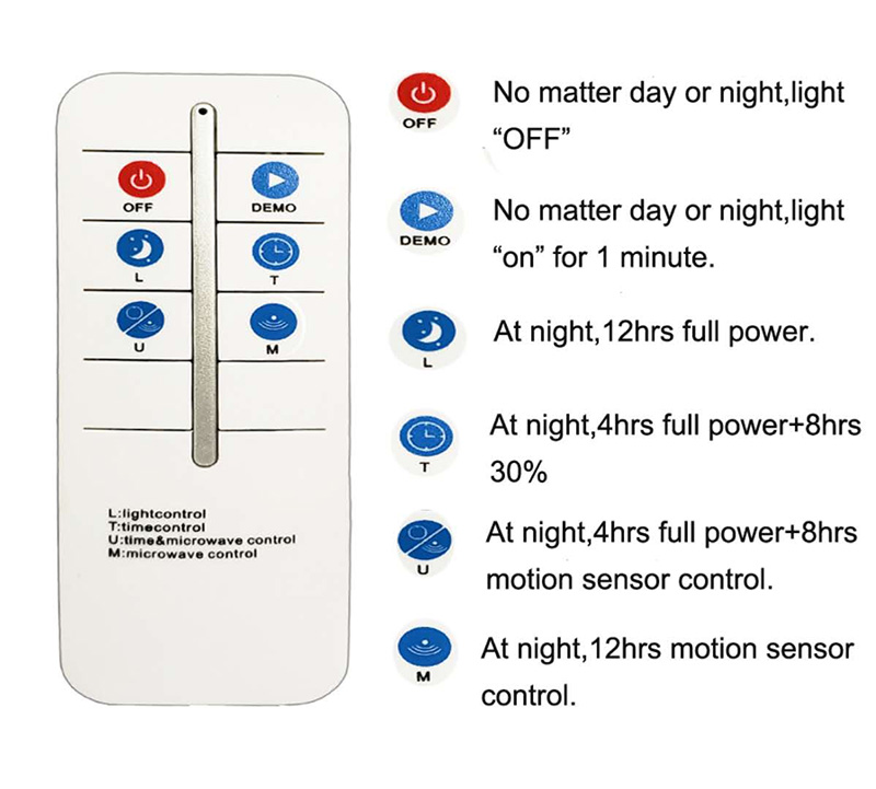 - Sensor malam + Sensor gerak gelombang mikro+Remote Control