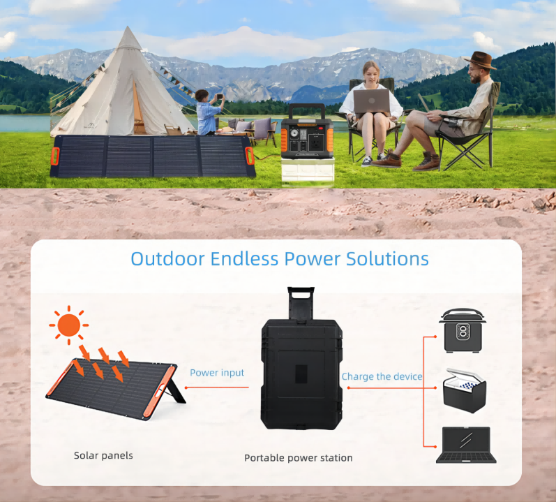 Portable power station, a convenient and mobile power source that provides efficient and stable power supply. This product utilizes advanced solar photovoltaic technology, which can be charged by natural light sources and also supports external chargers. In addition, the power station can also be charged by other energy sources such as wind power, making it suitable for various outdoor activities and emergency situations. This product features safety, reliability, environmental friendliness, energy efficiency, and stability, making it an essential power supply device for your travels and daily life. We also recommend that you pay attention to safety and comply with relevant regulations and standards during use.