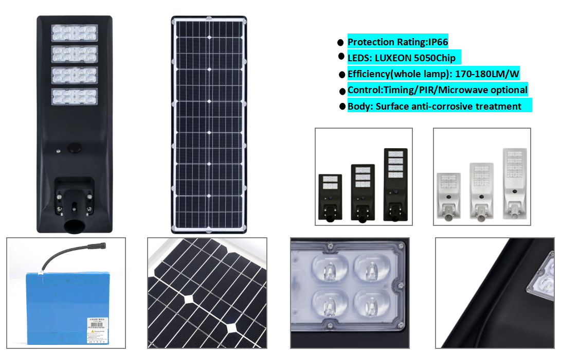Smart motion sensor integrated all in one led solar streetlight.